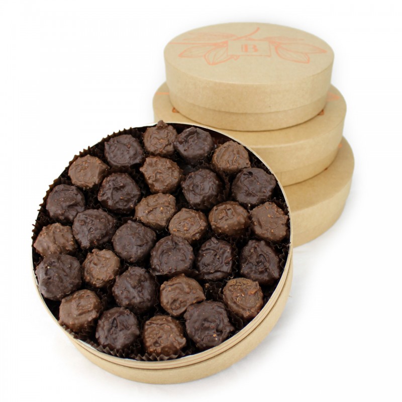 Les Rochers pralinés de La Bonbonnière sont tellement succulents, qu'ils méritent d'être offerts dans un bel écrin ! Une belle présentation pour le plus connu de nos chocolats ! Poids net env. : T1 : 250g, T2 : 360g, T3 : 500g