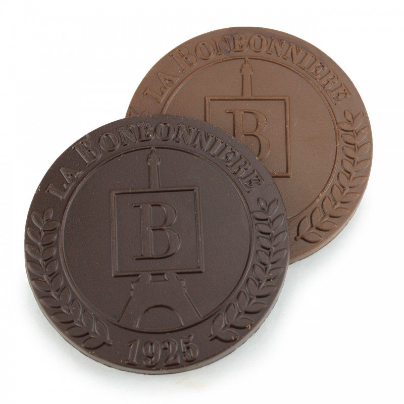 Cette délicisieuse médaille historique en chocolat, à l'effigie de Paris et de sa Tour Eiffel, marque les 100 ans de la maison La Bonbonnière ! Moulée dans un chocolat d'exception, c'est un beau mélange de fèves de cacao provenant d'Amérique latine à 70% de cacao pour le noir ou à 43 % de cacao pour le lait. Elle ravira tous les gourmands, qu'ils soient petits ou grands !